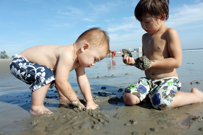 Jayden makes friends wherever he goes. It's a talent of his, along with being able to hold his hands behind his back and flip them over his shoulders without letting go. But that's another story for another post. So these are his new beach friends. They built fortresses and had a snowball sand fight. It was very entertaining. Funny boy.